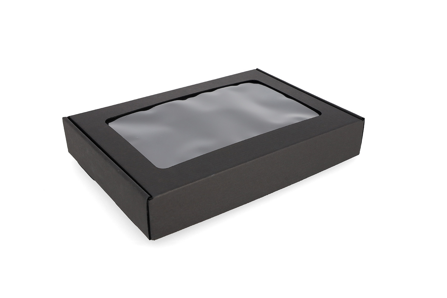 427-3L: 300 x 215 x 50 mm cardboard quick-closing box with window FEFCO 0427