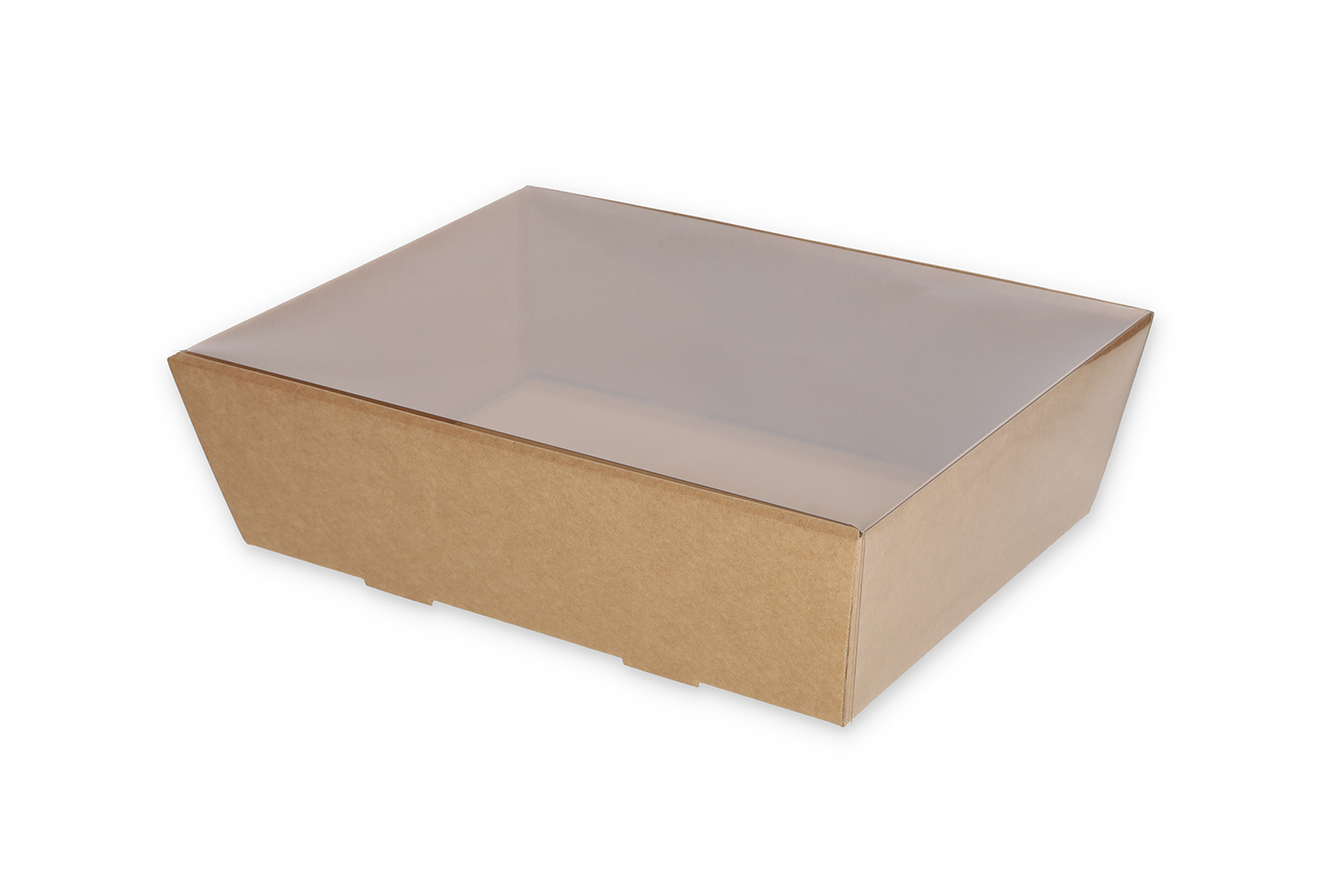 TRAY-5: Dovanų rinkinių dėžė su permatomu dangteliu, 290x210x90 mm