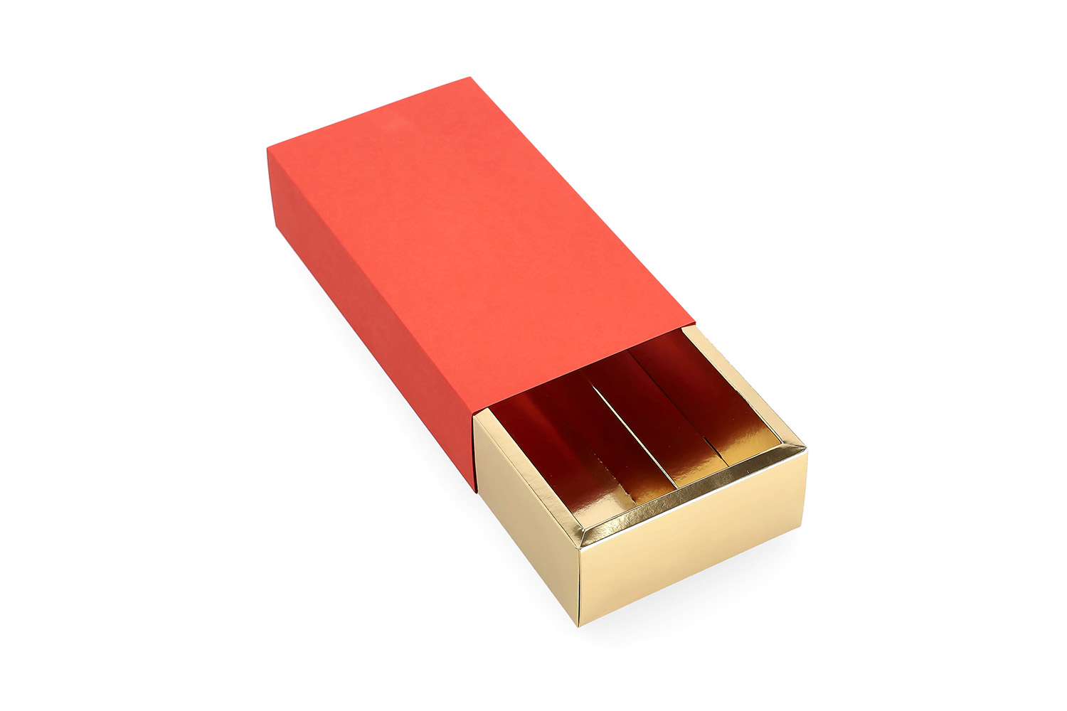 Raudonos spalvos dėžutės su auksinės spalvos vidumi, 1 vnt