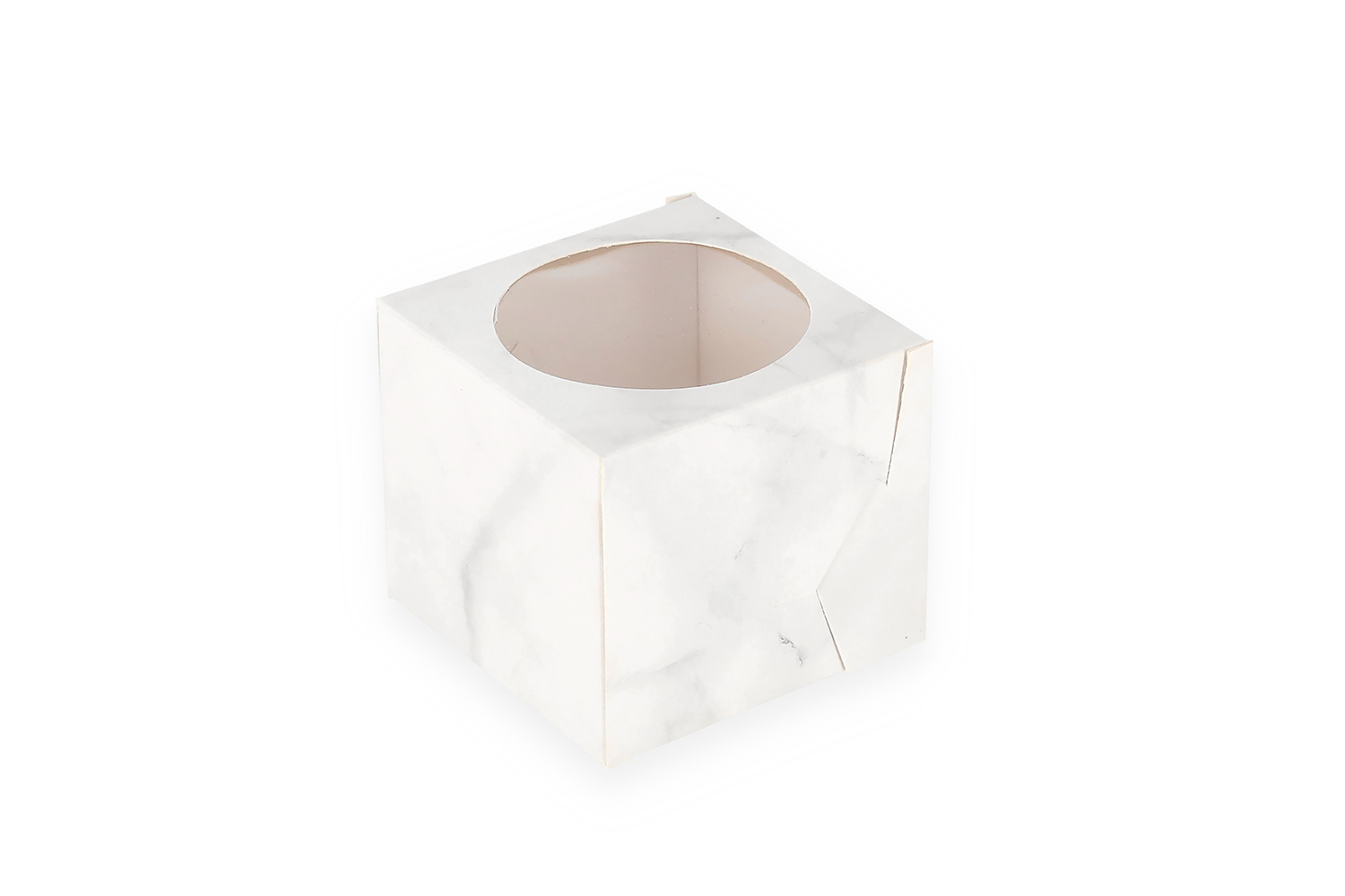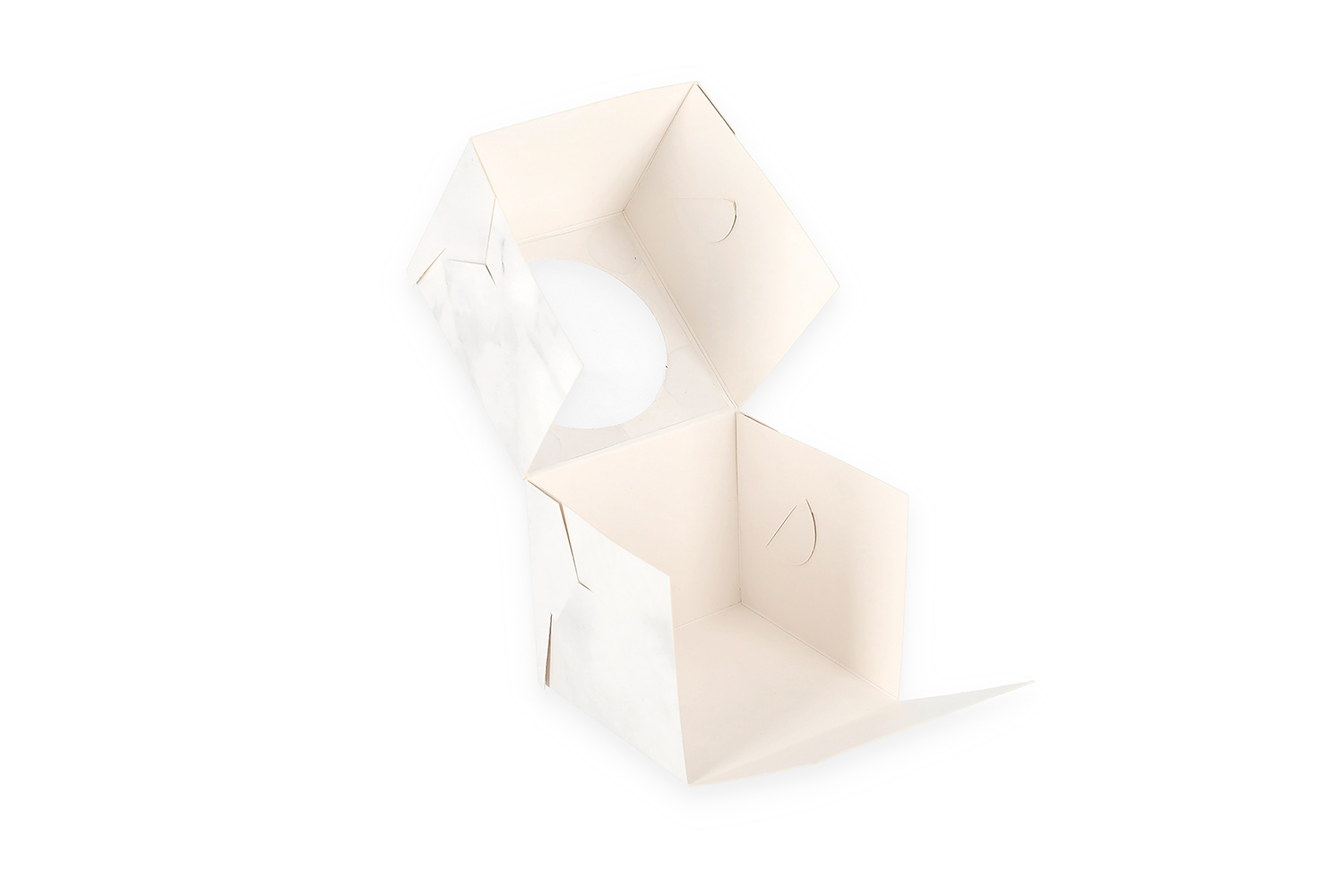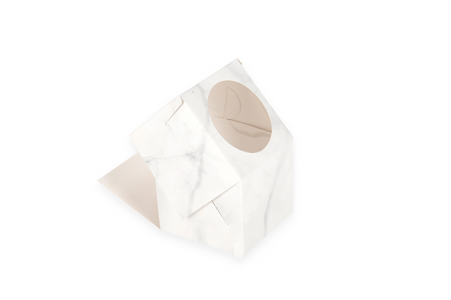 Surenkama dėžutės 1-am desertui, su PVC langeliu. Marmuro spalvos