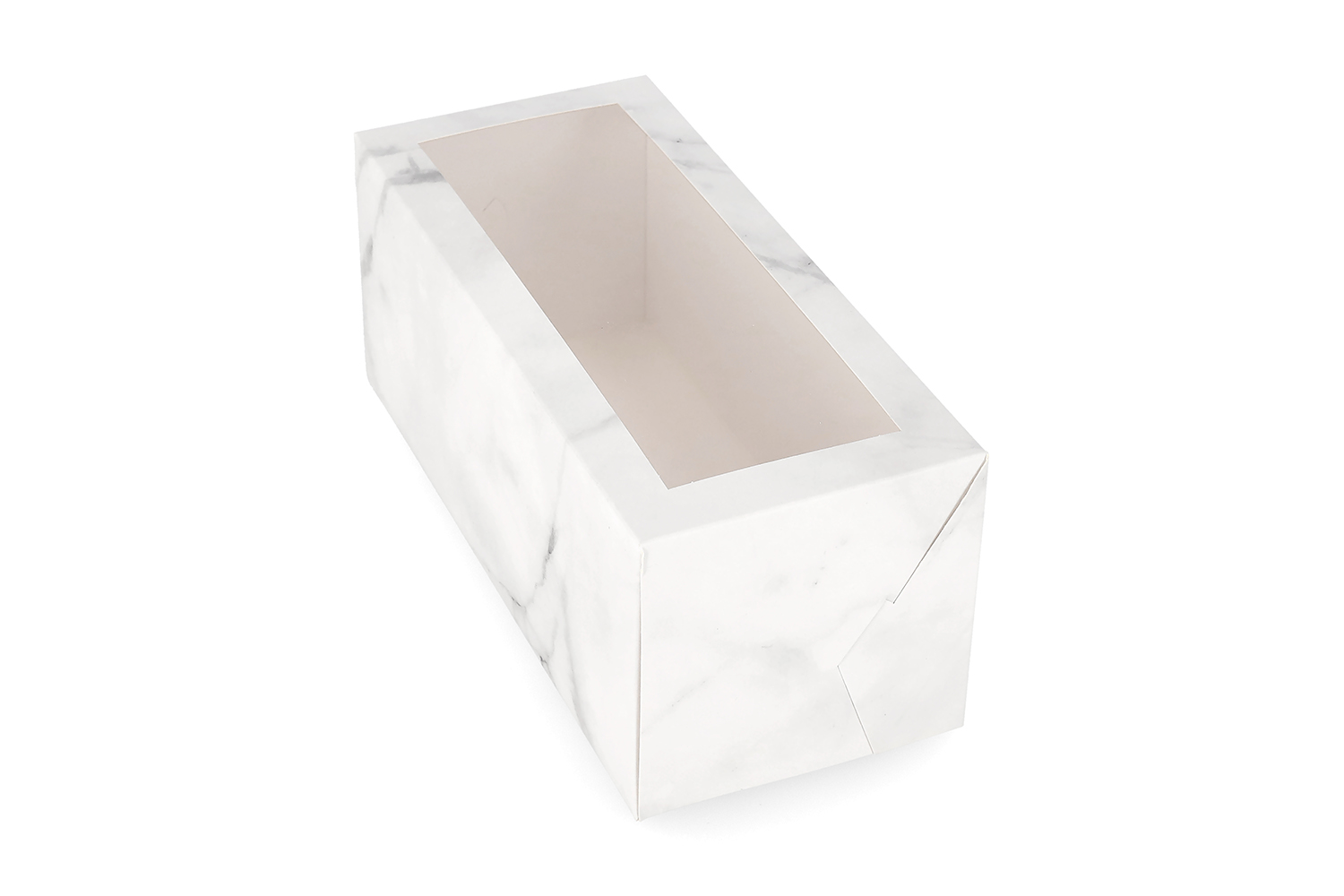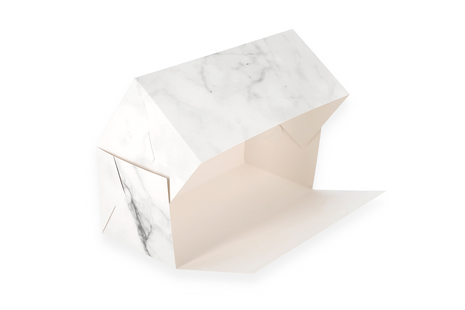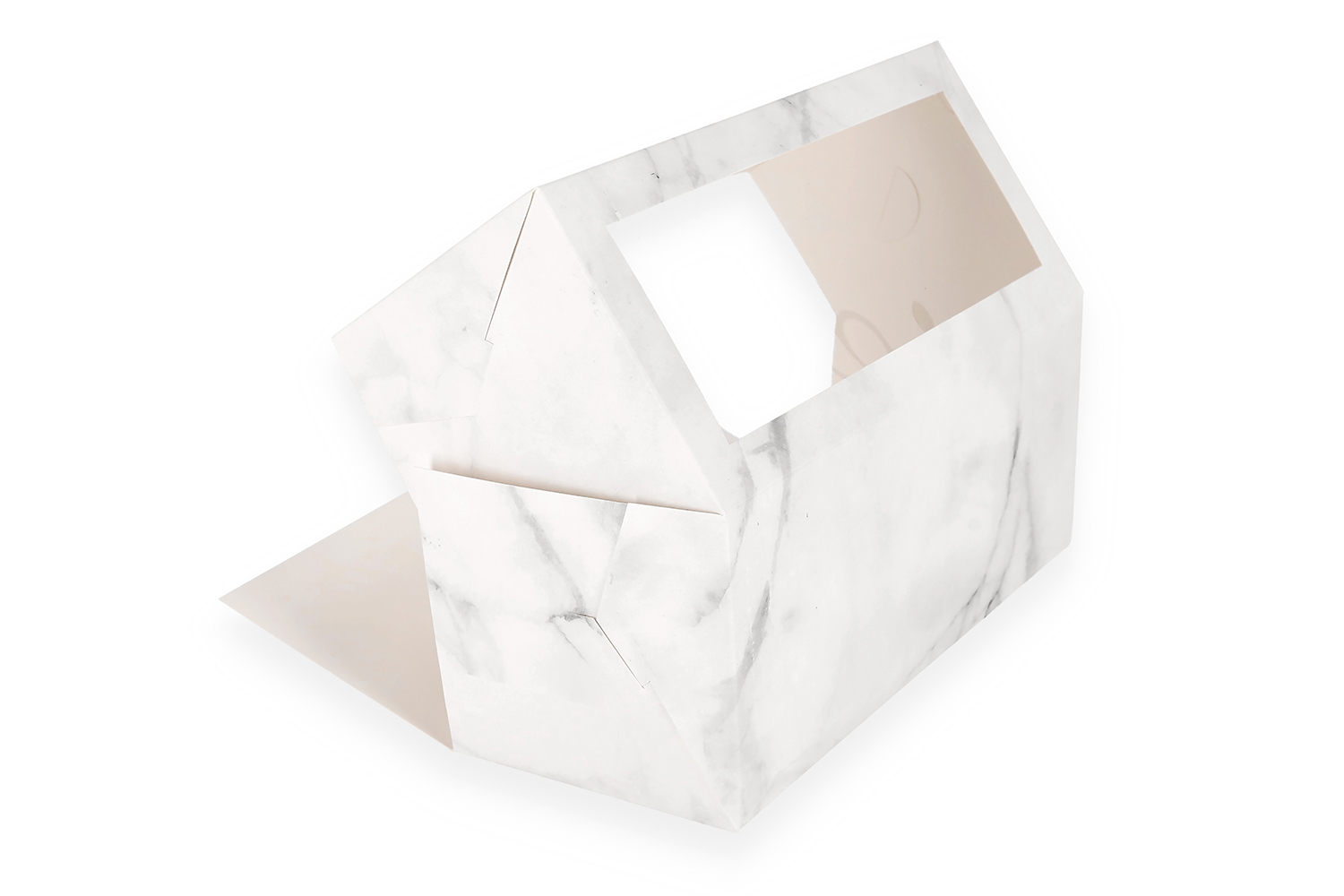 Surenkama dėžutės pyragui, su PVC langeliu. Marmuro spalvos