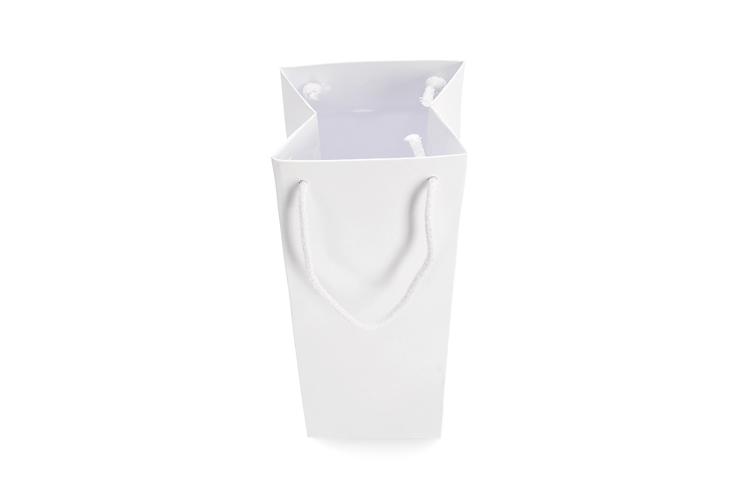 - Baltas maišelis – gaminamas iš to paties kraft popieriaus, bet nedažytas. Švarus, natūralus baltumas idealiai tinka minimalistiniam ir šviesiam įpakavimui.